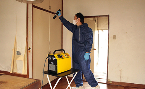オゾン燻蒸で対象環境を殺菌した後に清拭などの消毒作業に入ることで作業員への感染リスクも大幅に軽減されます。