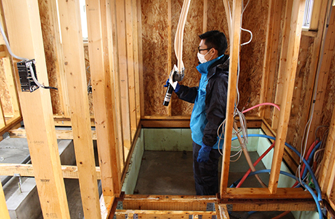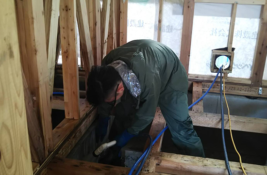 壁材や柱、基礎や配管等に至るまでしっかりとブラッシングを行い汚れをしっかり落とします。